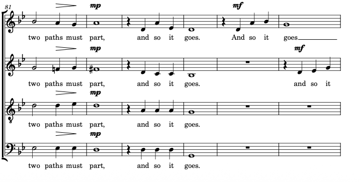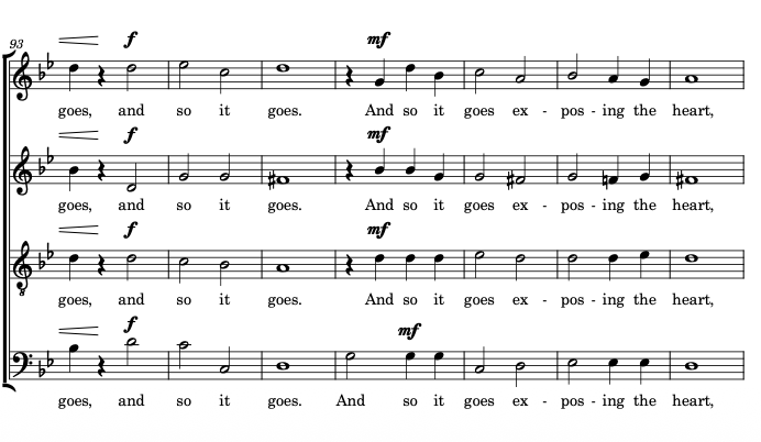“And So It Goes” A stirring SATB arrangement about loss and heartache. Intermediate to advanced singers.